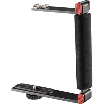 Ensure high-quality photo capture with this Rocketfish™ RF-CFB01 flash bracket that moves a flash away from your camera to minimize red-eye and side shadows. The bracket collapses to fit easily in your camera bag.