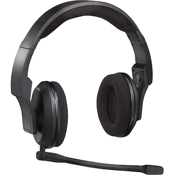 Versatile noise-canceling microphone offers left or right microphone placement with flexible-boom microphone
