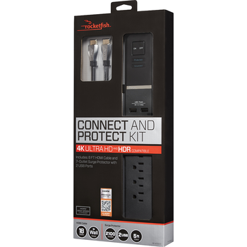 - Rocketfish 7-Outlet/2-USB Surge Protector with 8' 4K UltraHD, In-Wall Certified HDMI Cable
