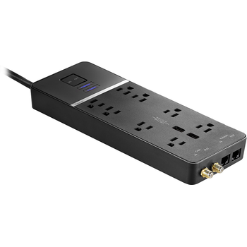 Only @ Best BuyThis Rocketfish™ RF-HTS2815 surge protector offers 8 outlets, plus coaxial and phone line protection, to help defend your connected devices against power spikes and surges. Two USB ports make it easy to charge a tablet or 2 cell phones.
