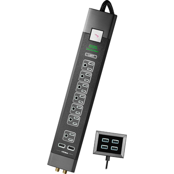 Only at Best BuyRun your premium home theater safely with this seven-outlet Rocketfish power center. Its advanced two-stage power filtration provides stable electrical transmission for interference-free 4K content and lossless audio output of plugged components, and its 4080-joule rating ensures ample surge protection. This 9.6-amp Rocketfish power center also has two onboard USB ports for charging portable gadgets.
