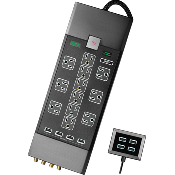 Only at Best BuyOperate your home theater system with this 12-outlet Rocketfish power center. It provides ample surge protection for premium components, and it has four onboard USB ports to charge portable devices. Connect this 9.6-amp Rocketfish power center to a distant electrical source thanks to its 6-foot cord and two included 1-foot extension cables.