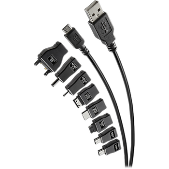Charge select USB devices with this Rocketfish™ Mobile RF-MLT7 charging cable that includes 9 separate adapters that allow you to charge the battery of select mobile phones.