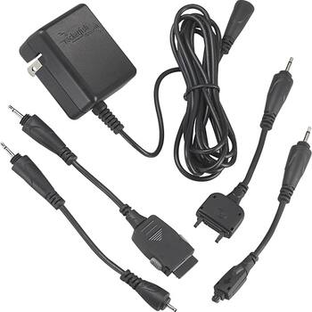 This wall charger fits most standard DC outlets and features interchangeable tips so you can charge a variety of mobile phones.